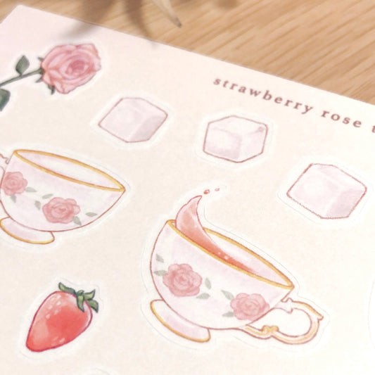 strawberry rose tea sticker sheet