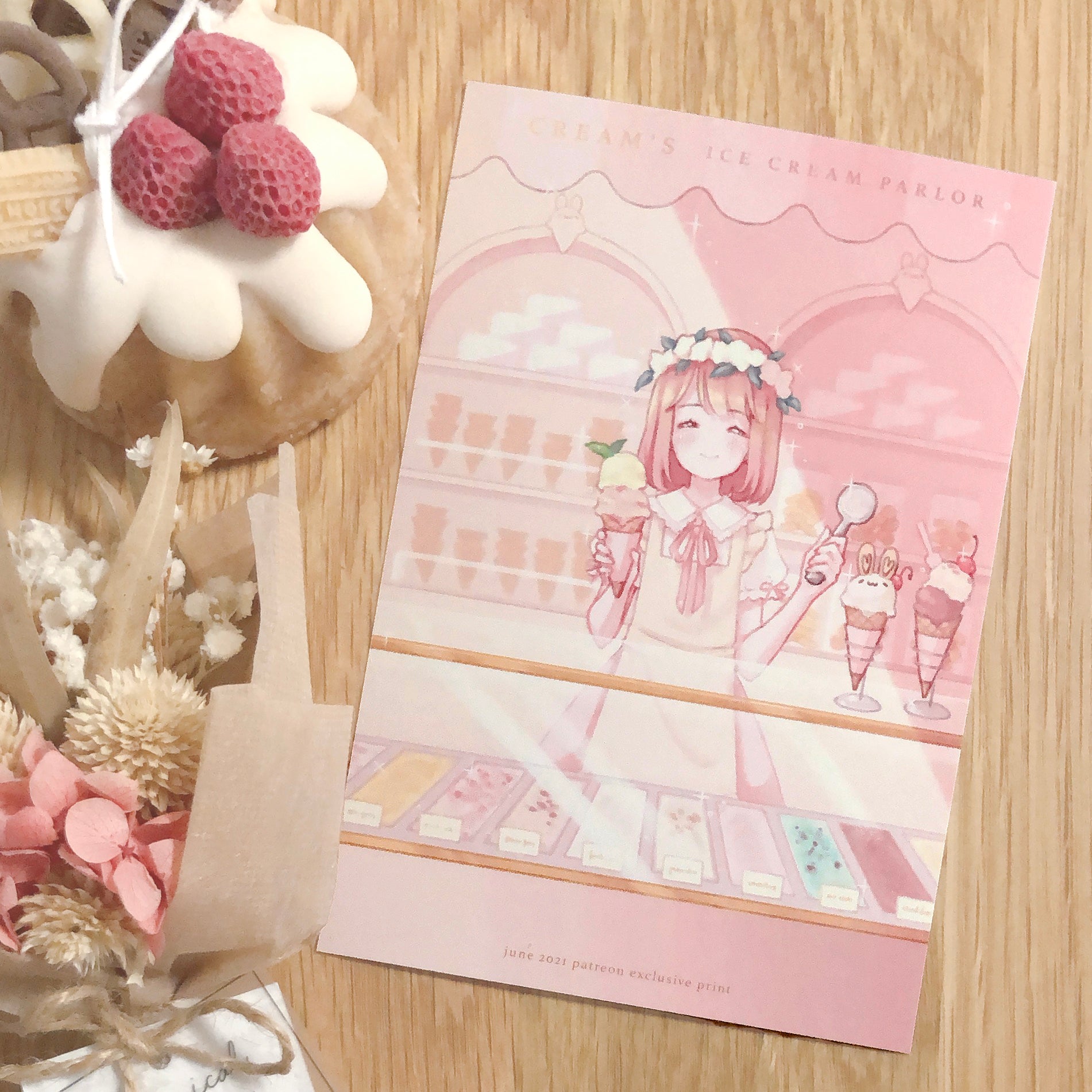 A postcard-sized print of Cream-chan in her ice cream parlor ♡