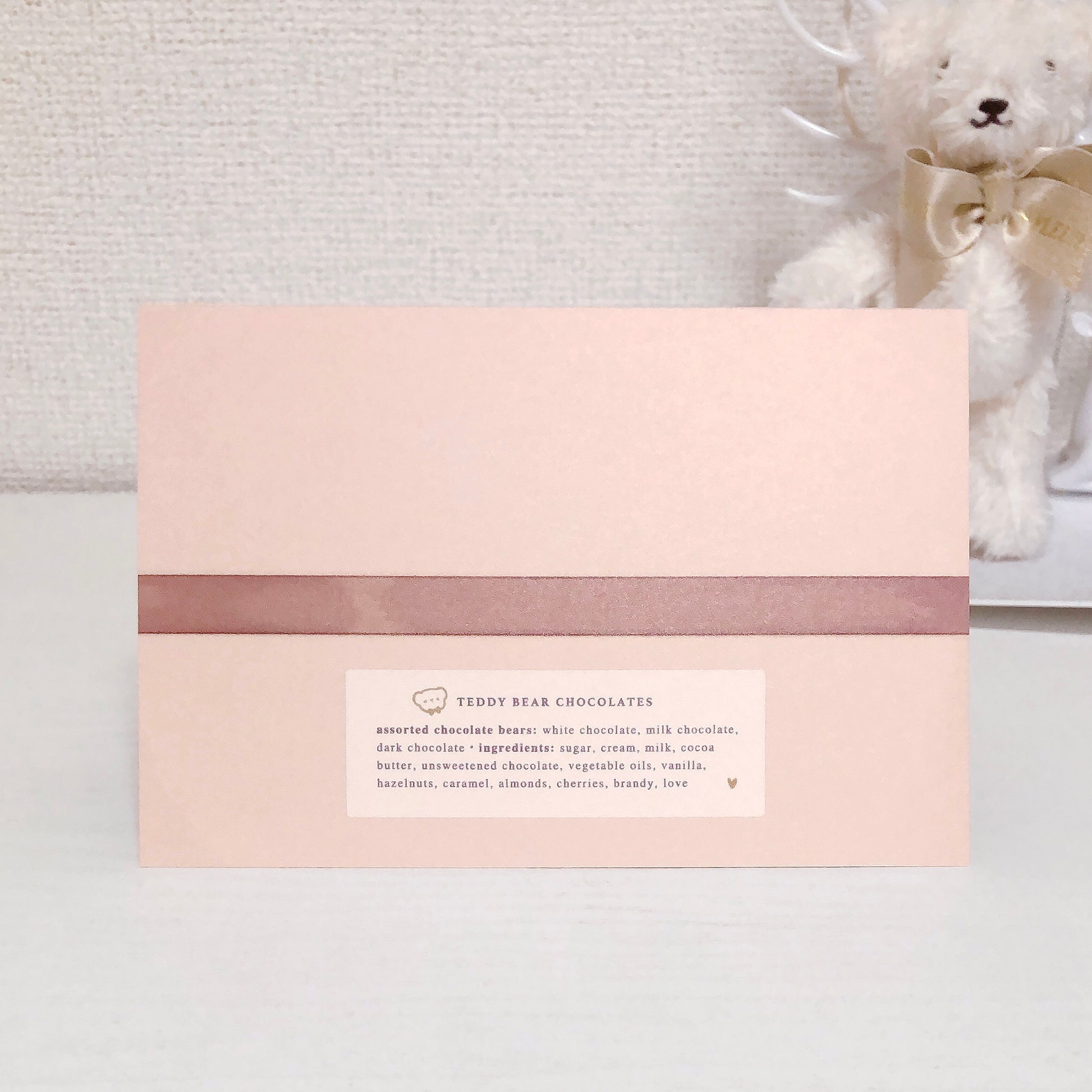 A greeting card designed as a box of chocolates from the teddy bear chocolatier, complete with an affixed sticker sheet of peelable chocolate stickers inside! ♡